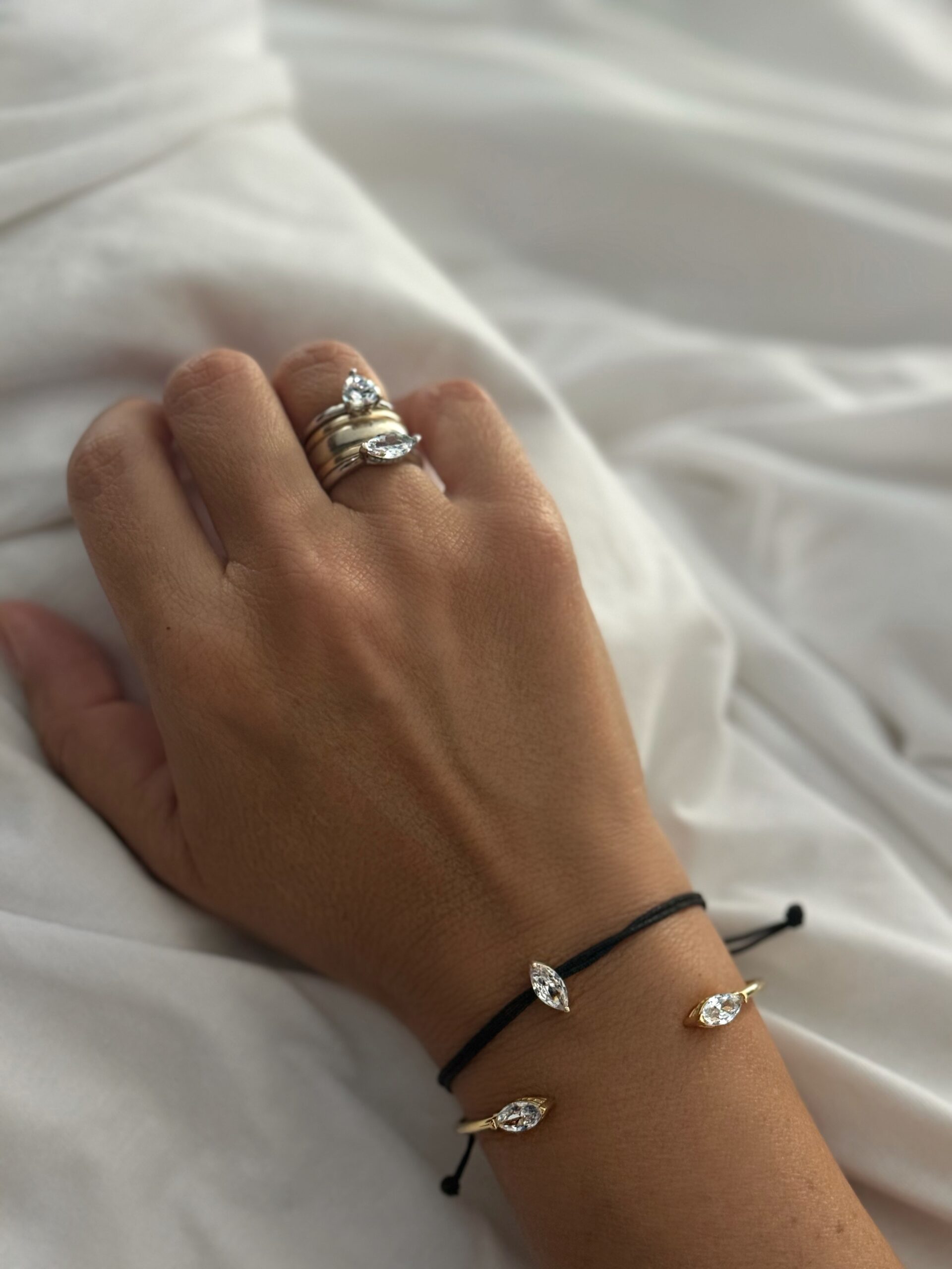 אני בחרתי לענוד את הטבעת בשילוב טבעת הנישואין שלי במידה 6