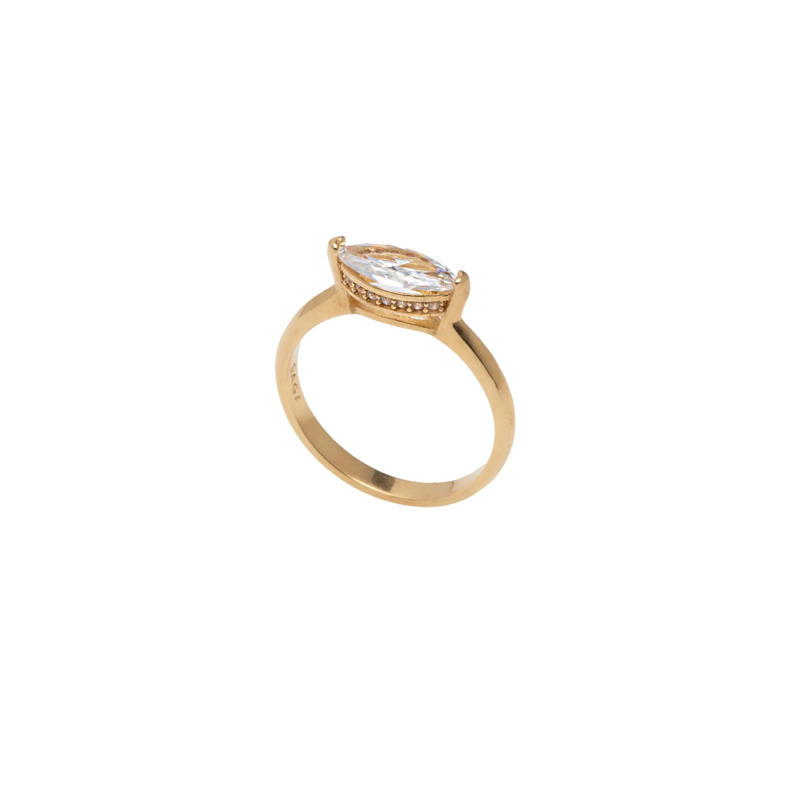 טבעת כסף 925 משובצת זרקון מרכזי בחיתוך מרקיזה ומסביב זרקונים משובצים בעבודת יד