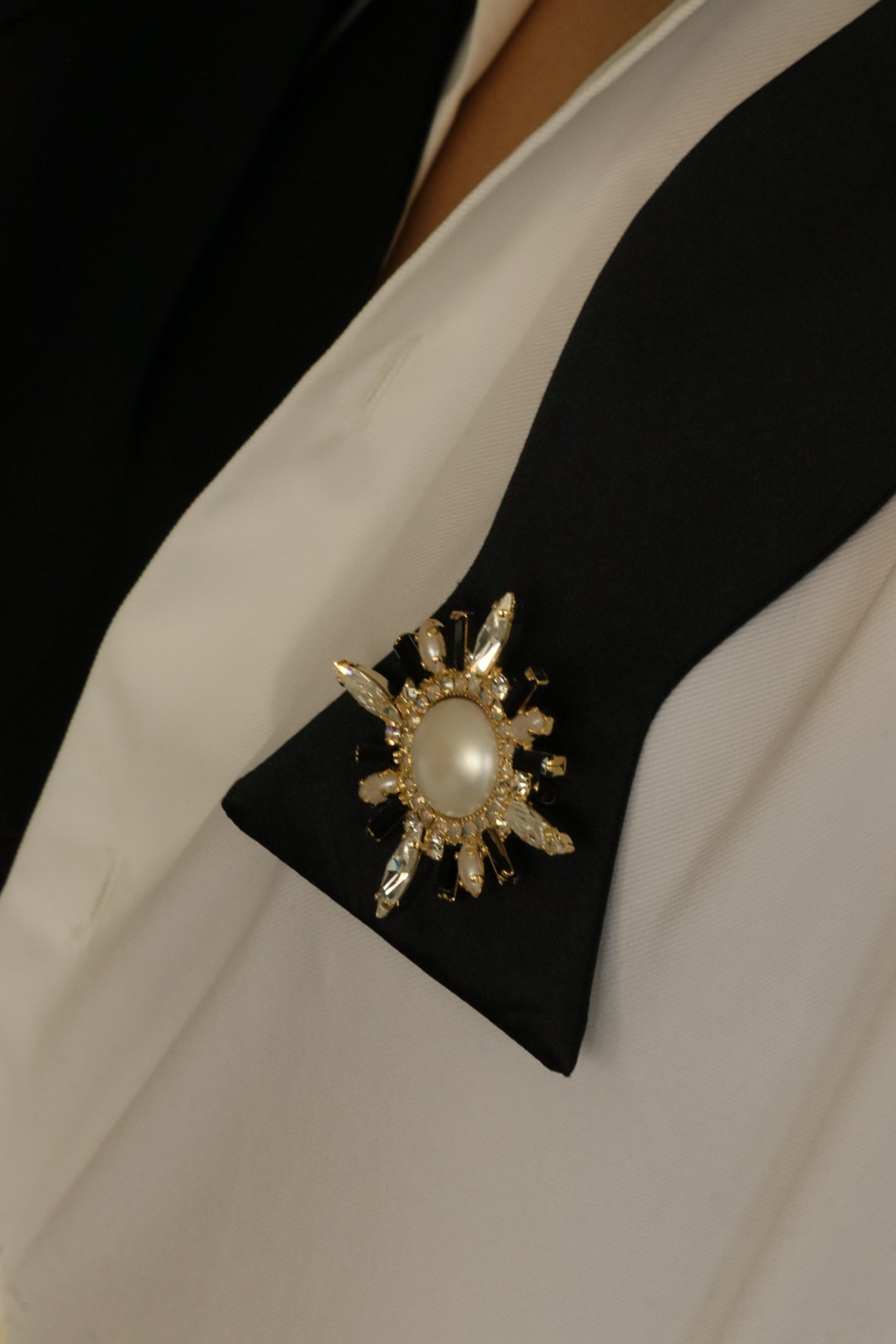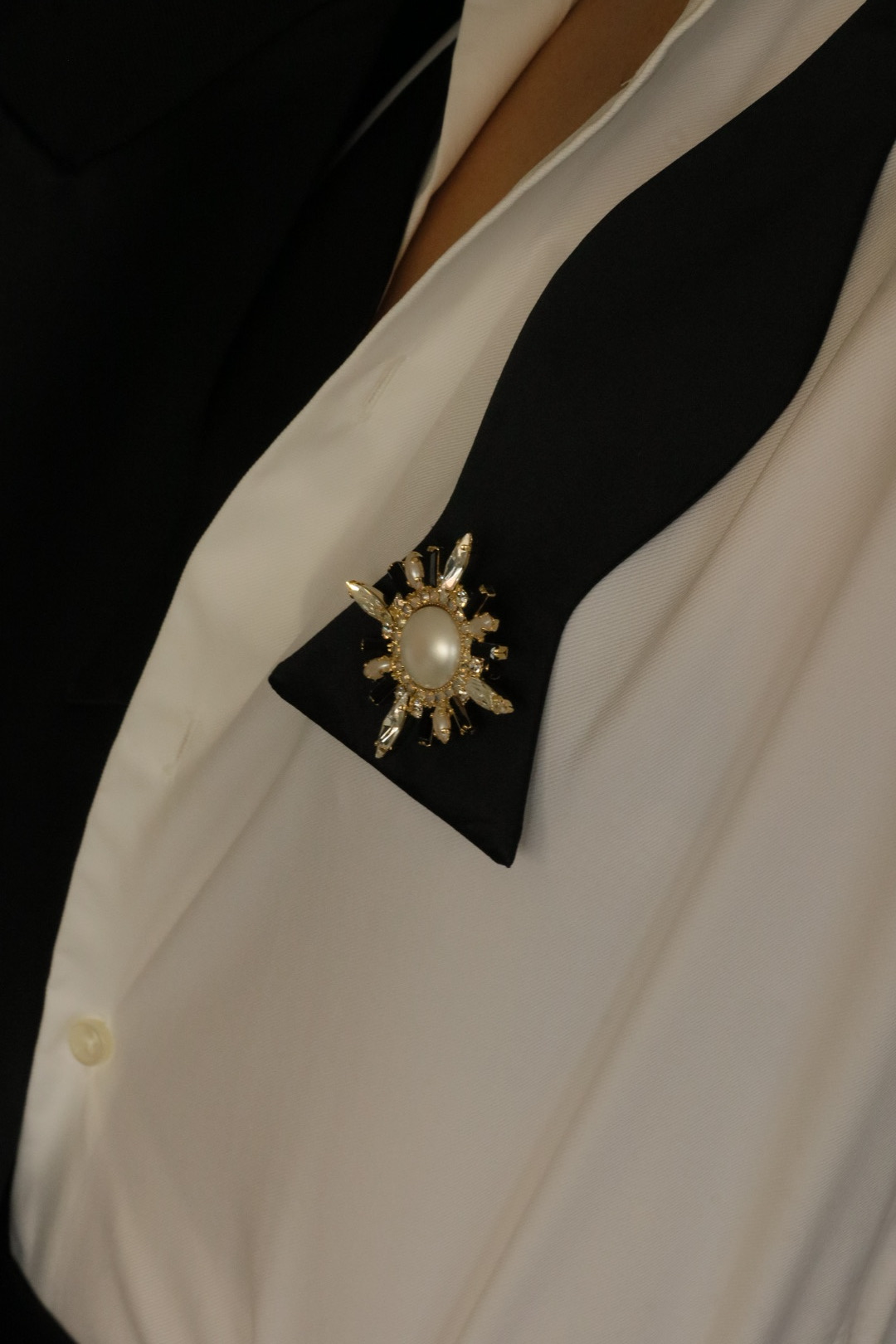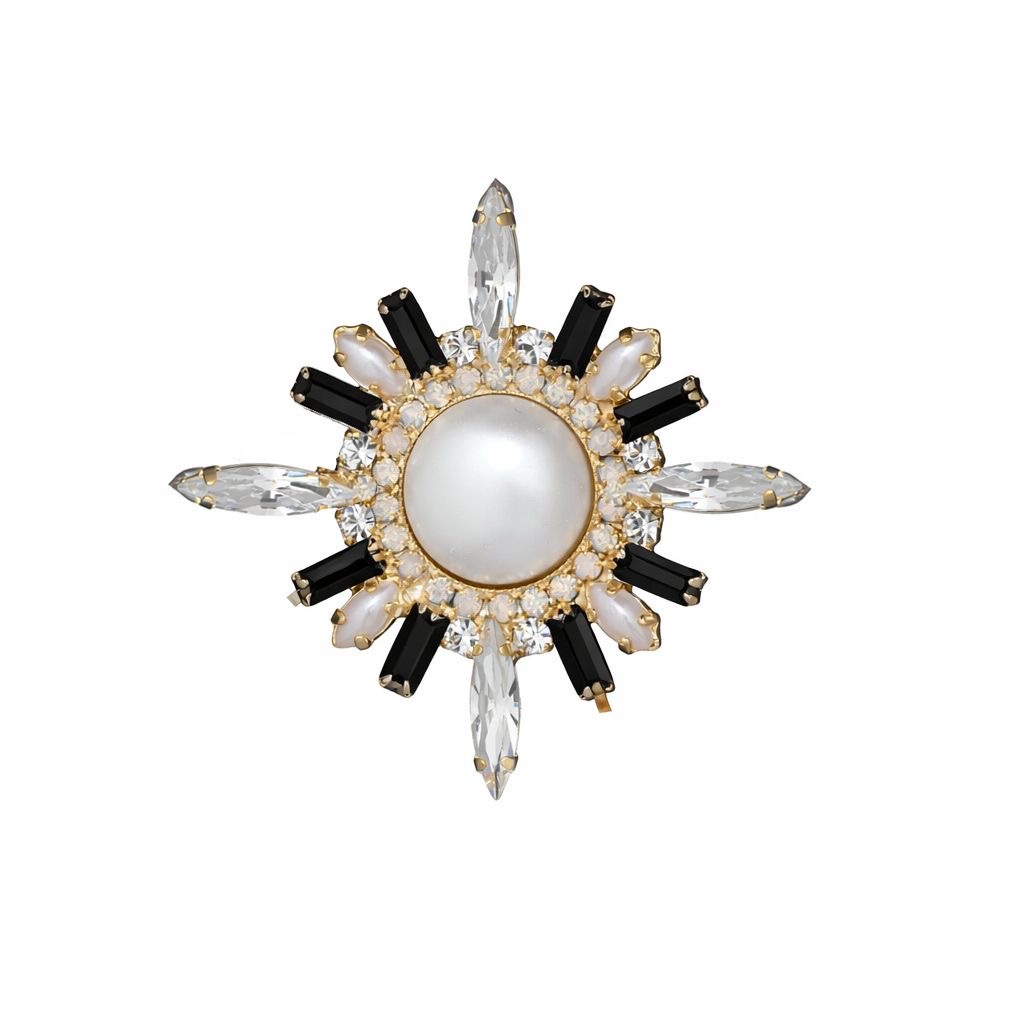 סיכת דש בעבודת יד משולבת קריסטלים ואבני בגט בגוון שחור מט
