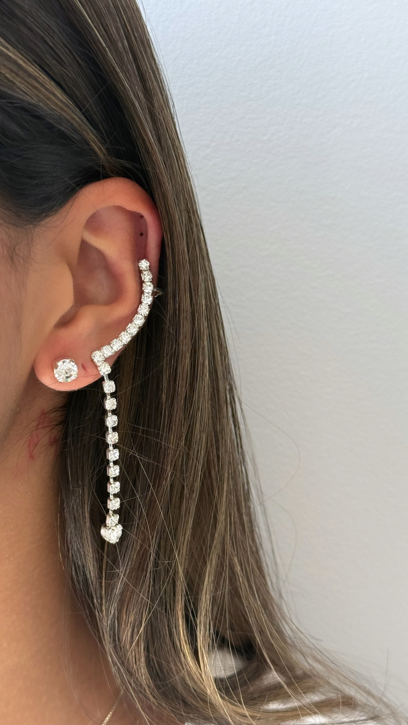 עגיל מטפס קלאסי משולב קריסטל ואבן בודדת לב סוורובסקי