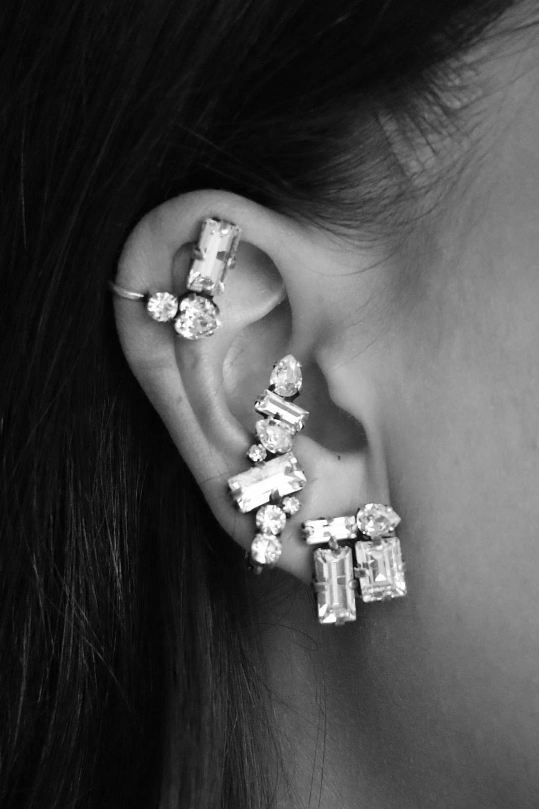 עגיל עליון בודד על בסיס קליפס בורג משובץ קריסטלים