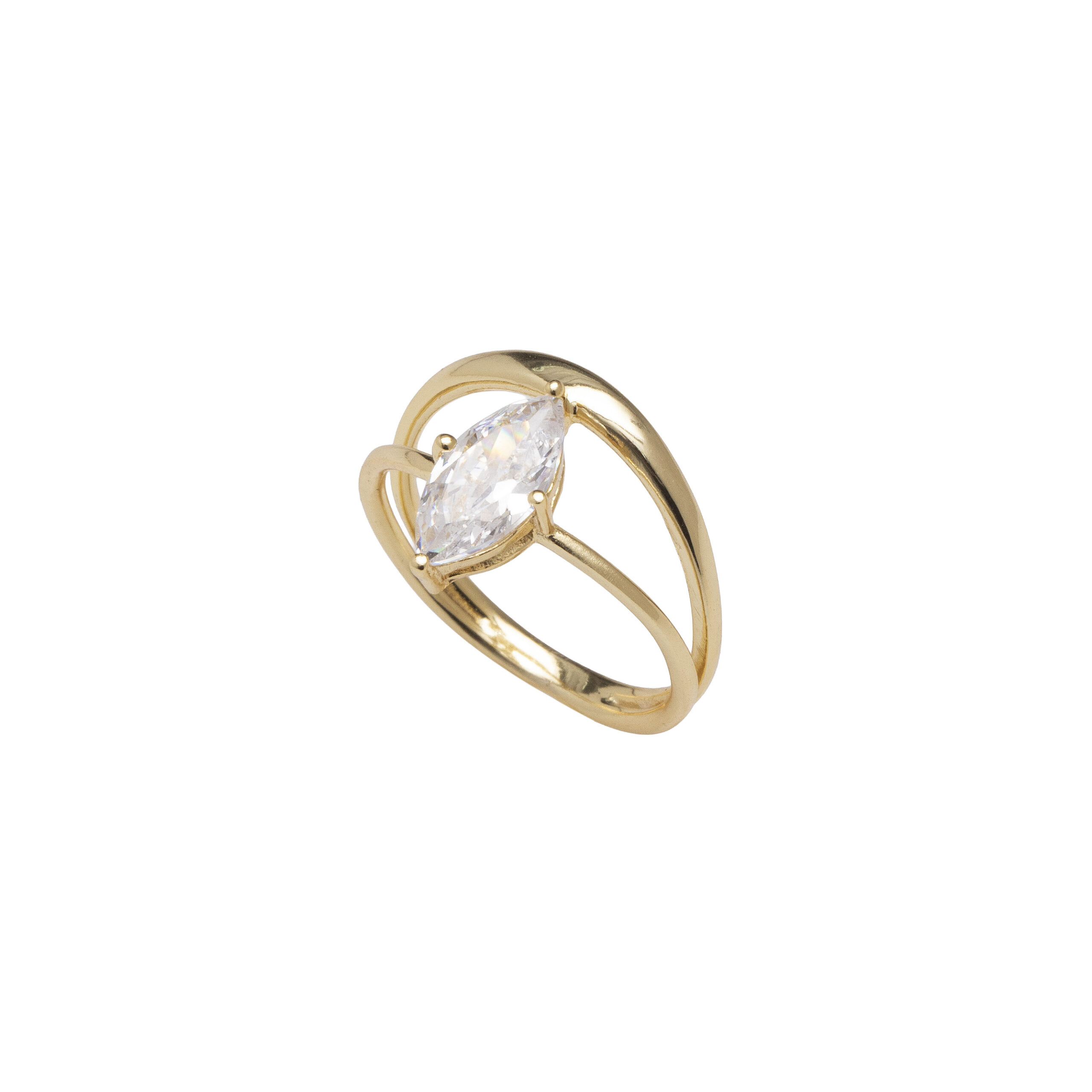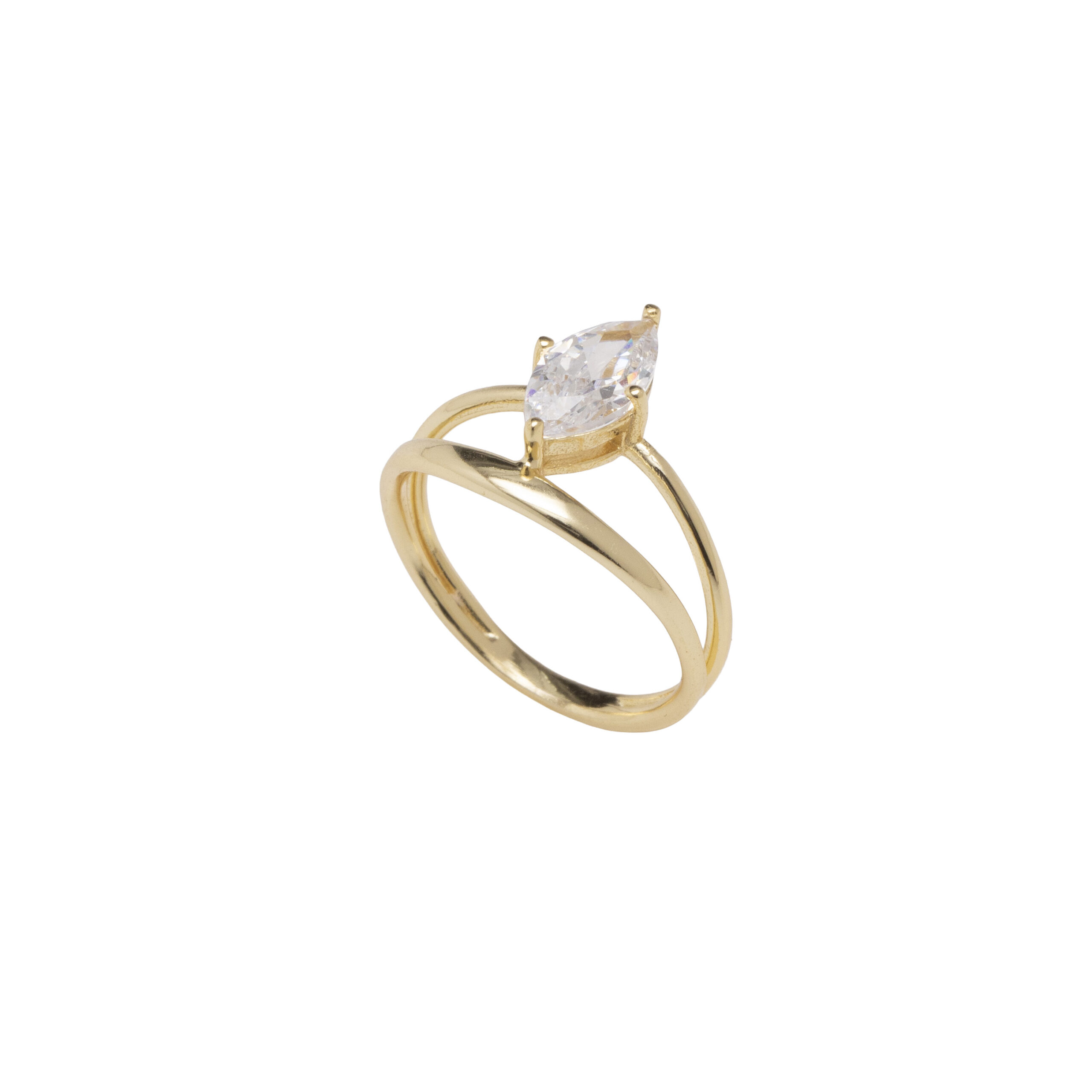 טבעת כסף 925 קלאסית כפולה מושלבת זרקון מרקיזה קיימת בגוון מקרון זהב מידה 4 מתאימה לזרת