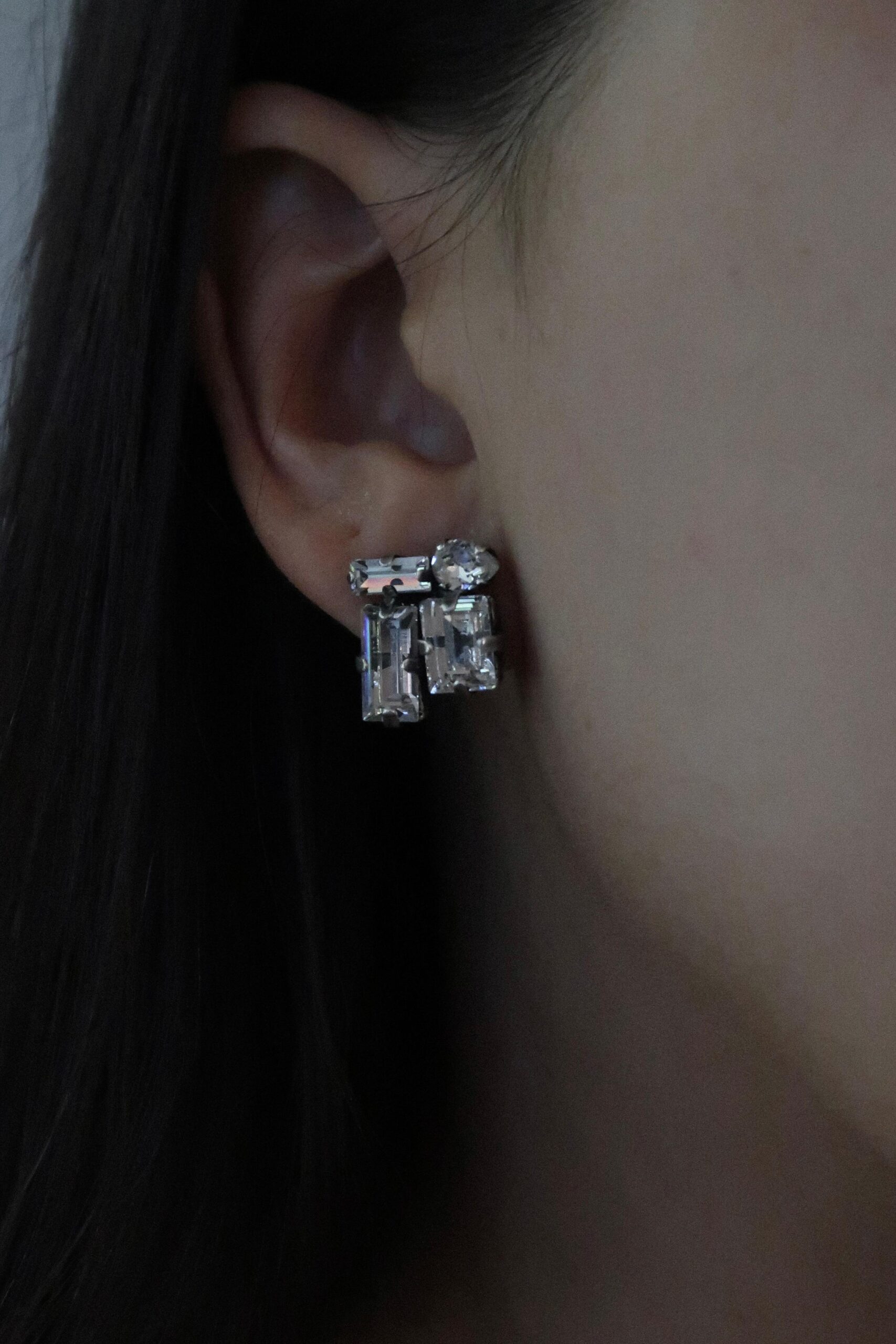 זוג עגילי דוקרן משובצים קריסטלים בחיתוכים שונים