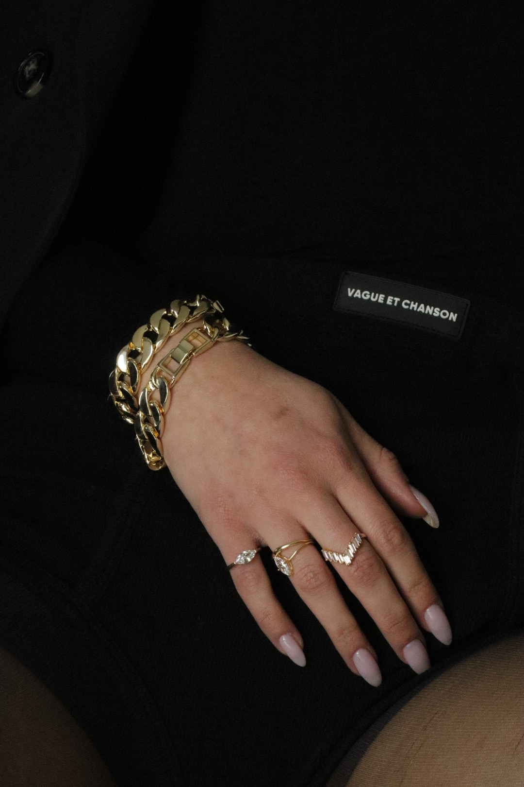 צמיד גורמט בעבודת יד חתום המותג ברמת ליטוש וגימור הגבוהה ביותר הצמיד נסגר ע"י מנגנון ייחודי ובלעדי לסאגא חתום אורך הצמיד פתוח 19 ס"מ אורך הצמיד סגור 17ס"מ משקל הצמיד 57 גרם
